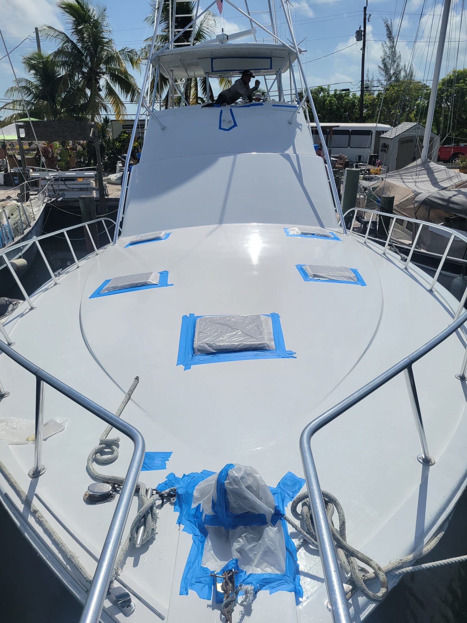 Marine tape and seal treatments create an airtight enclosure around the vessel, allowing fumigation to penetrate deep into wood and hidden spaces to eliminate termites and other pests inside the boat.